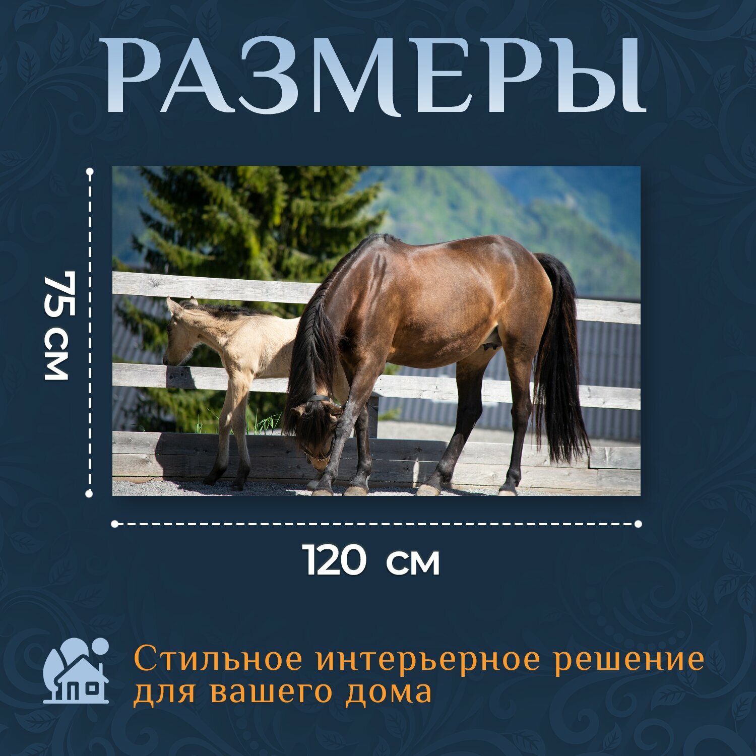 Картина на холсте "Лошади, пони, связь" на подрамнике 120х75 см. для интерьера информация: