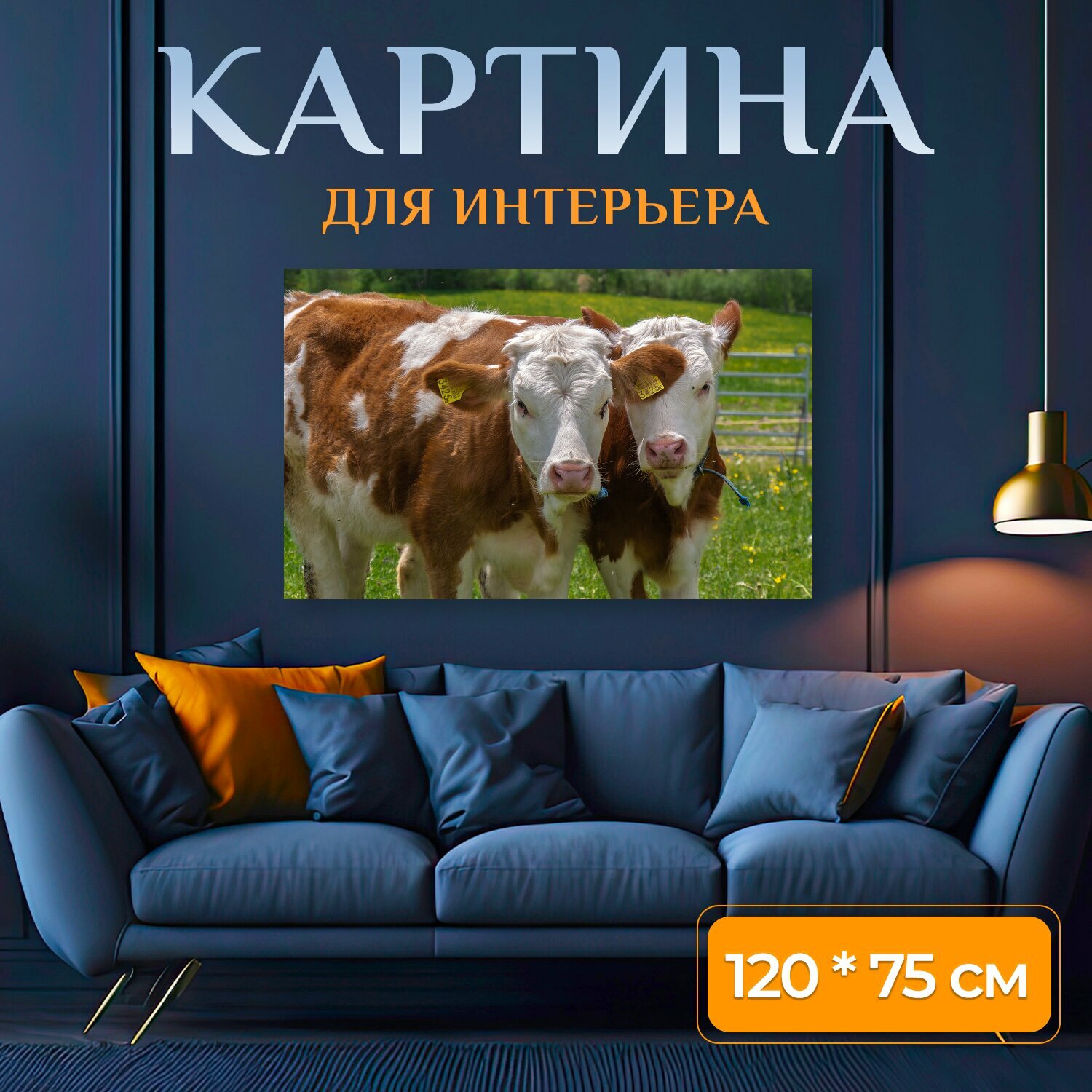 Картина на холсте "Животные, домашний скот, коровы" на подрамнике 120х75 см. для интерьера информация: