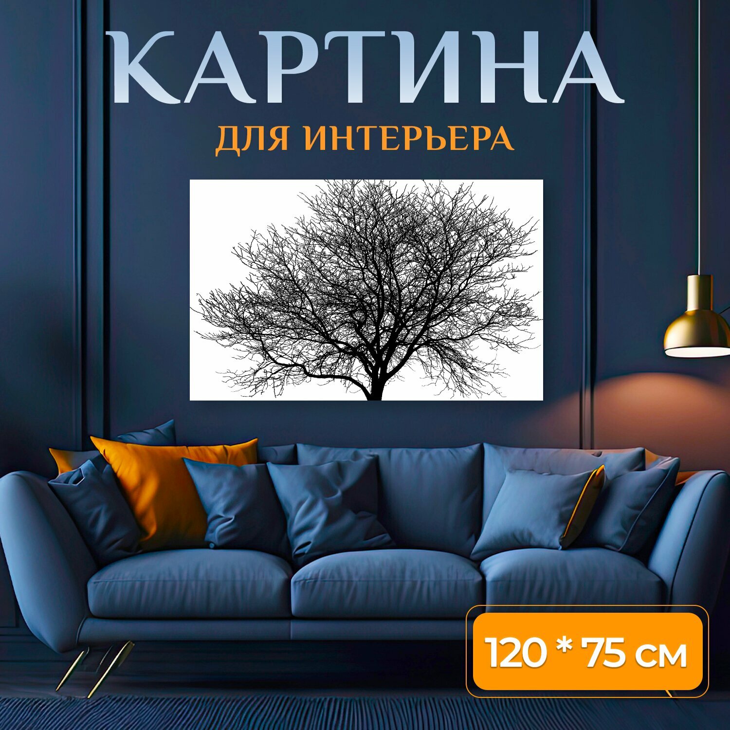 Картина на холсте "Дерево, ветви, силуэт" на подрамнике 120х75 см. для интерьера информация: