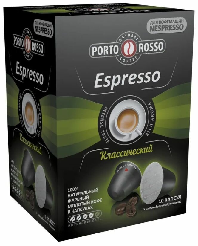 10 цен на Кофе в капсулах, Porto Rosso Espresso Кофейные капсулы 10 шт. по 5 гр.