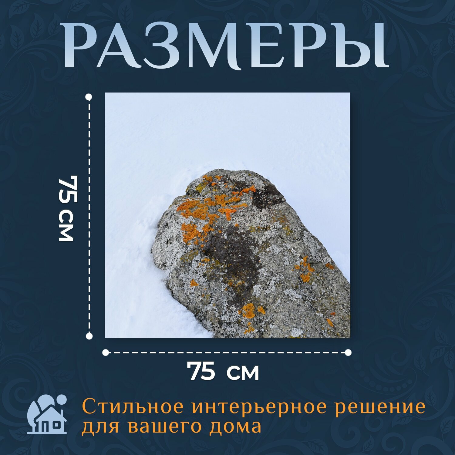 Картина на холсте "Камень, лишайник, снег" на подрамнике 75х75 см. для интерьера информация: