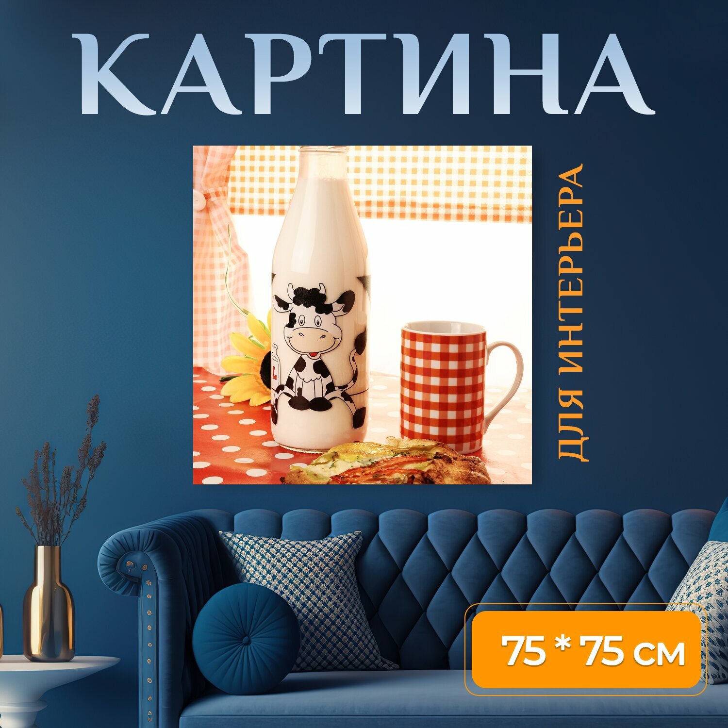 10 цен на Картина на холсте "Молоко, чашка, напиток" на подрамнике 75х75 см. для интерьера