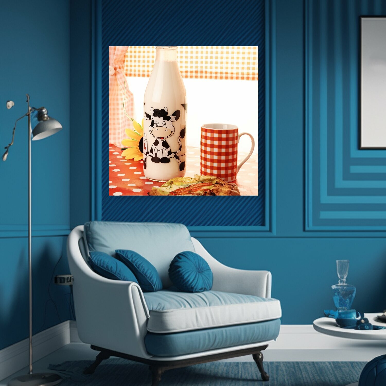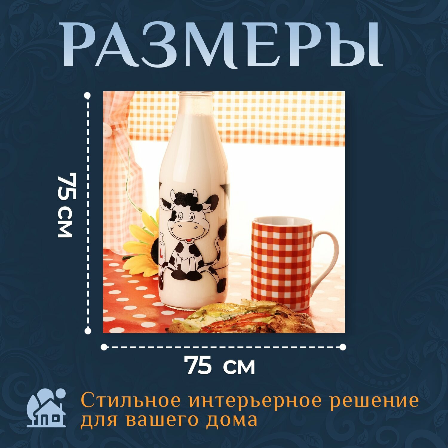 Картина на холсте "Молоко, чашка, напиток" на подрамнике 75х75 см. для интерьера информация: