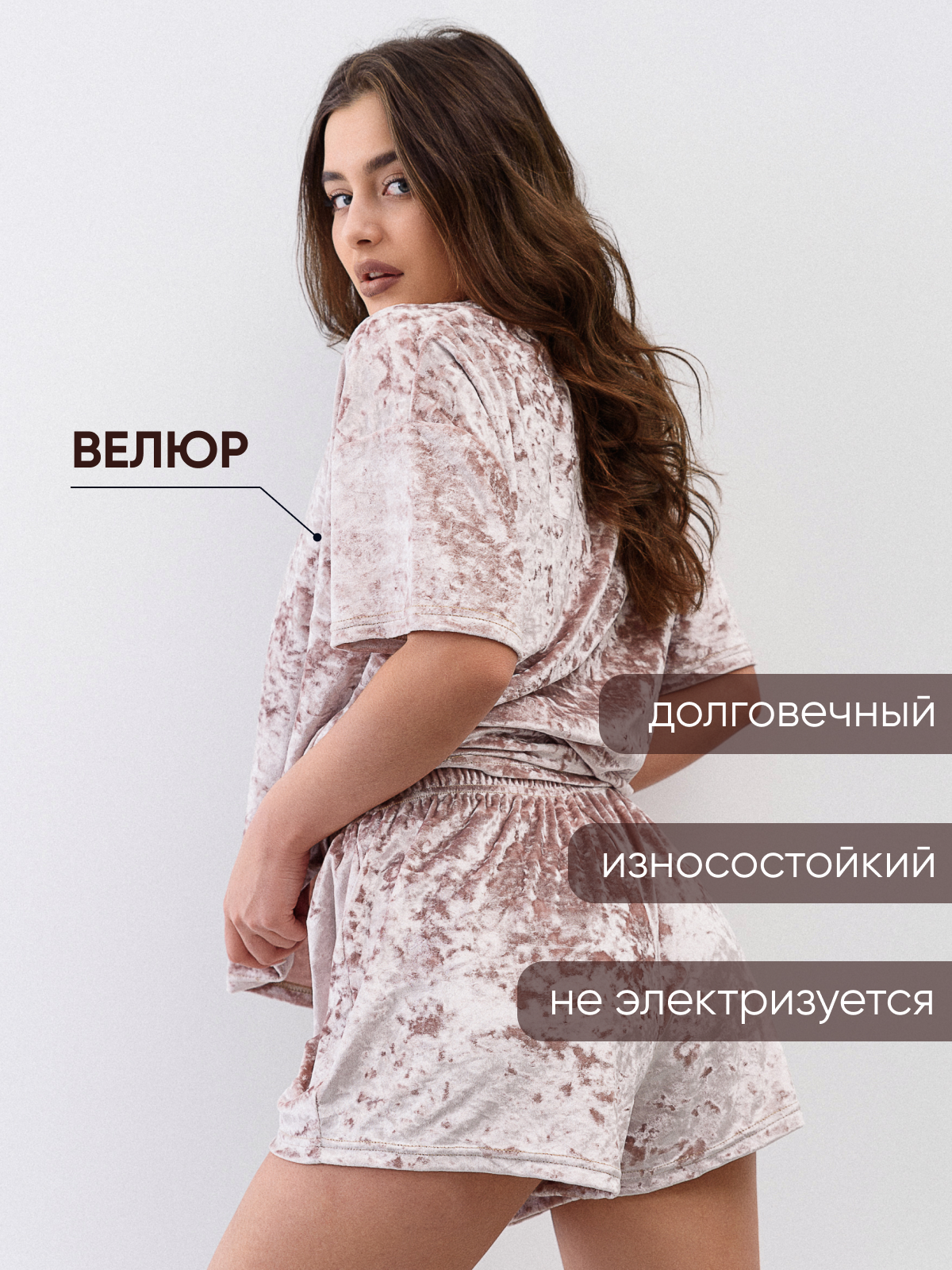 10 цен на Пижама велюровая с шортами и футболкой размер 48