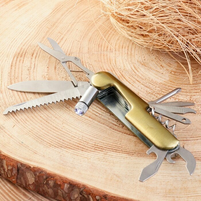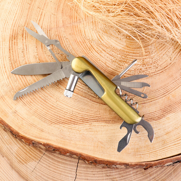 10 цен на Нож многофункциональный 11в1, 15см, клинок 60/2мм, золотистый