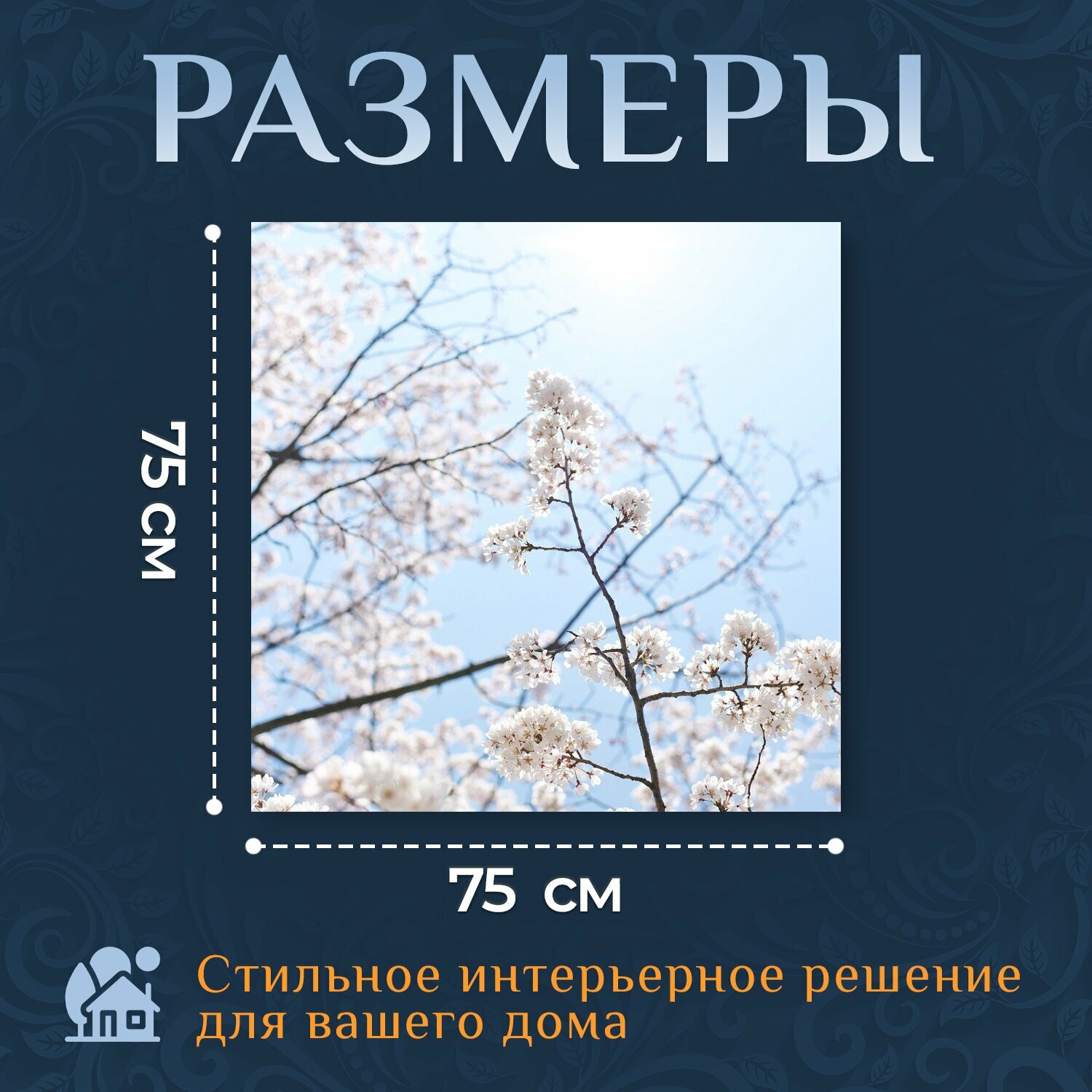 Картина на холсте "Сакура, небо, весна" на подрамнике 75х75 см. для интерьера информация:
