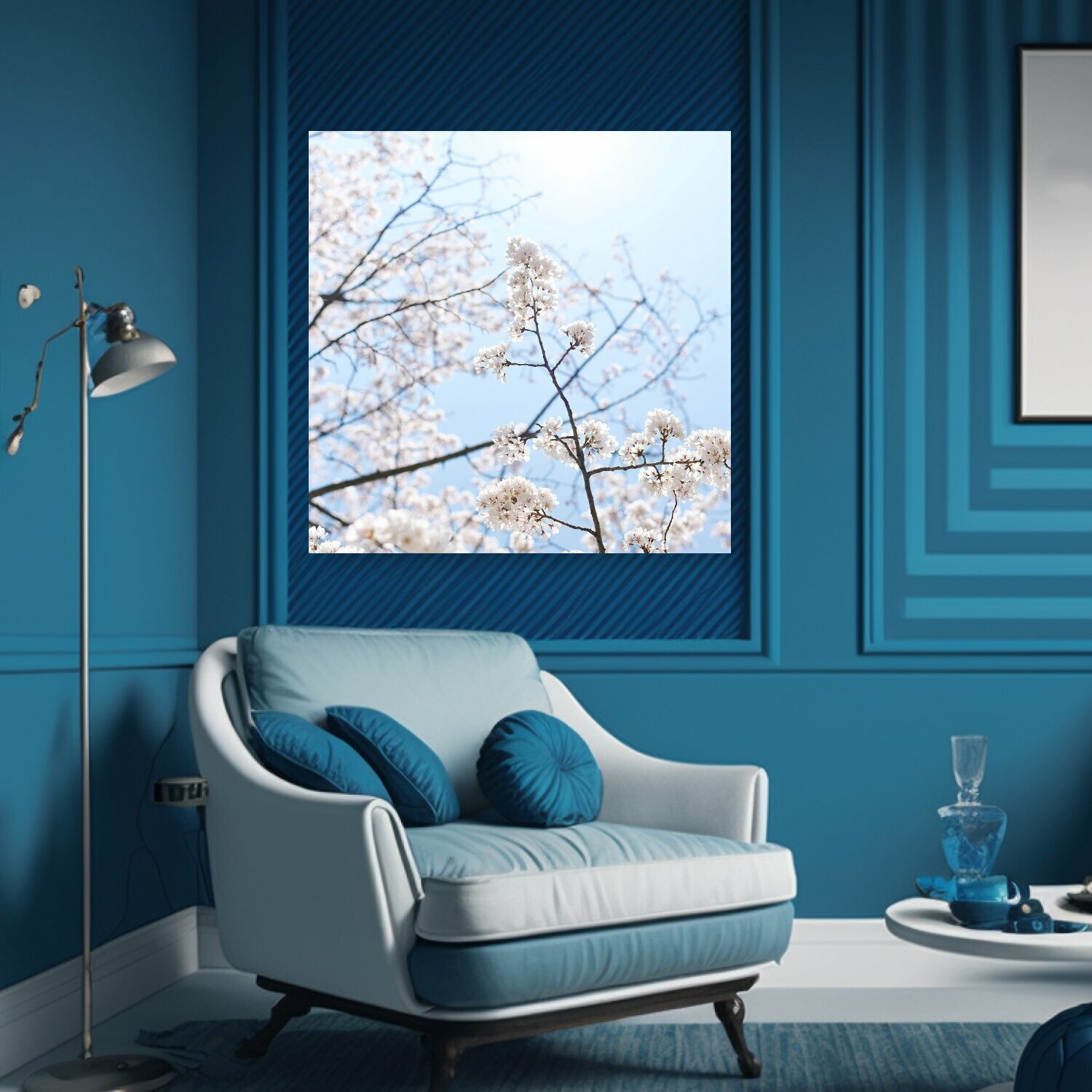 10 цен на Картина на холсте "Сакура, небо, весна" на подрамнике 75х75 см. для интерьера