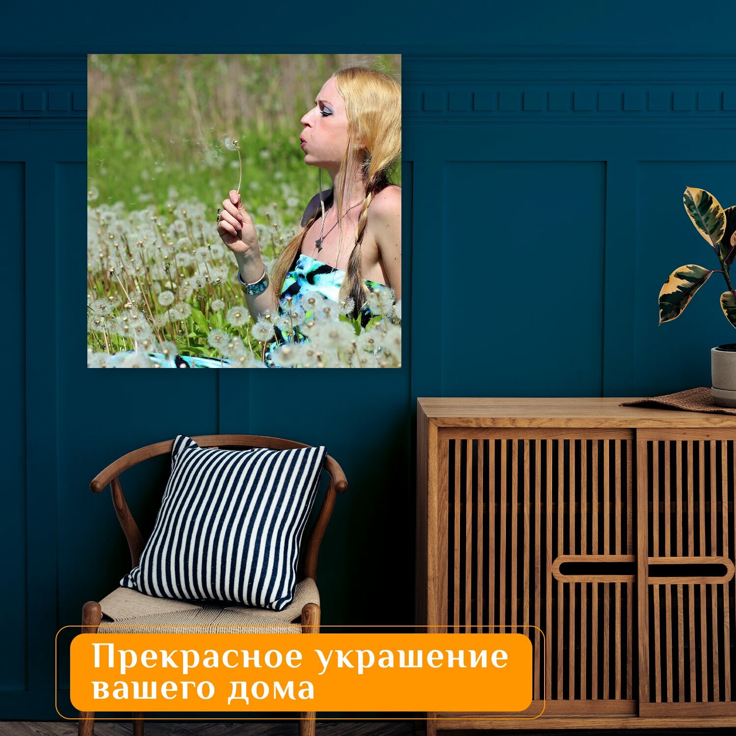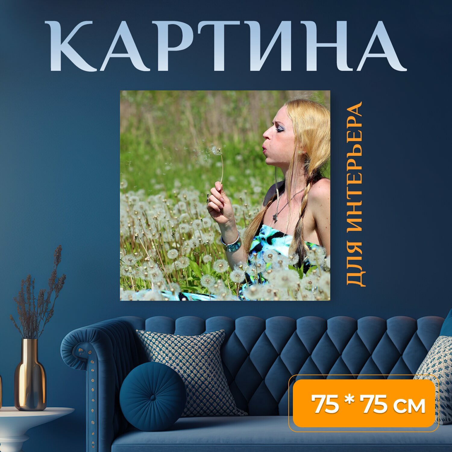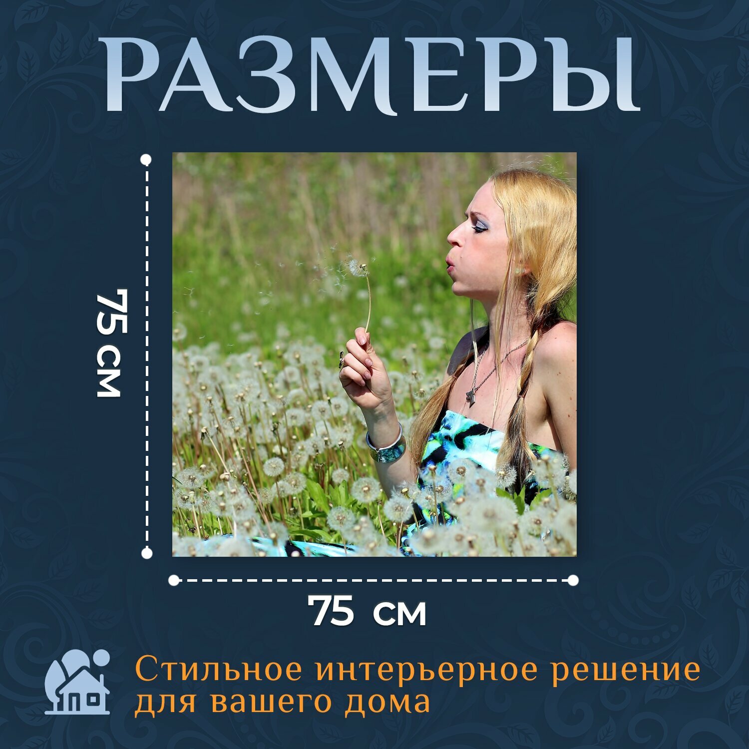 Картина на холсте "Блондинка, поле, дует" на подрамнике 75х75 см. для интерьера информация: