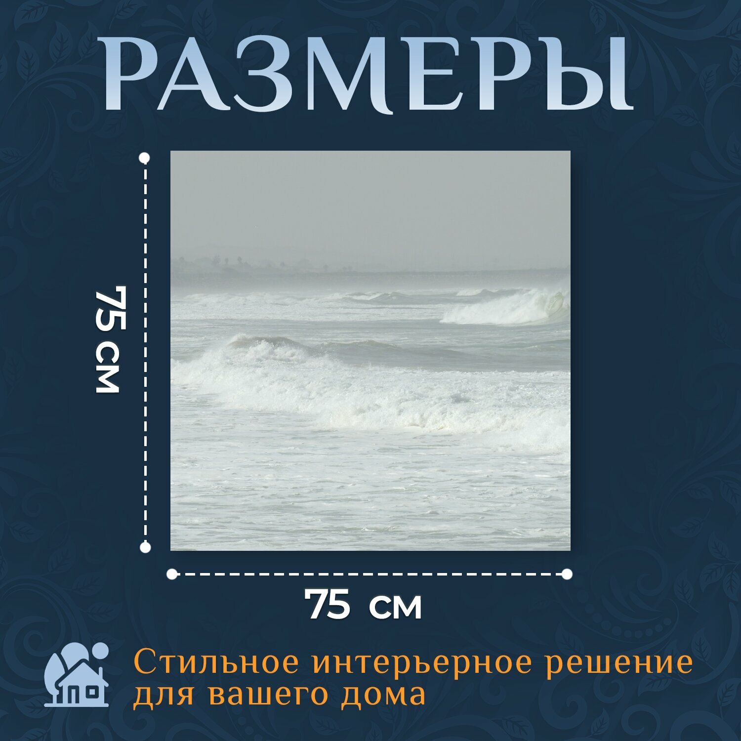 Картина на холсте "Океан, волны, водоем" на подрамнике 75х75 см. для интерьера информация: