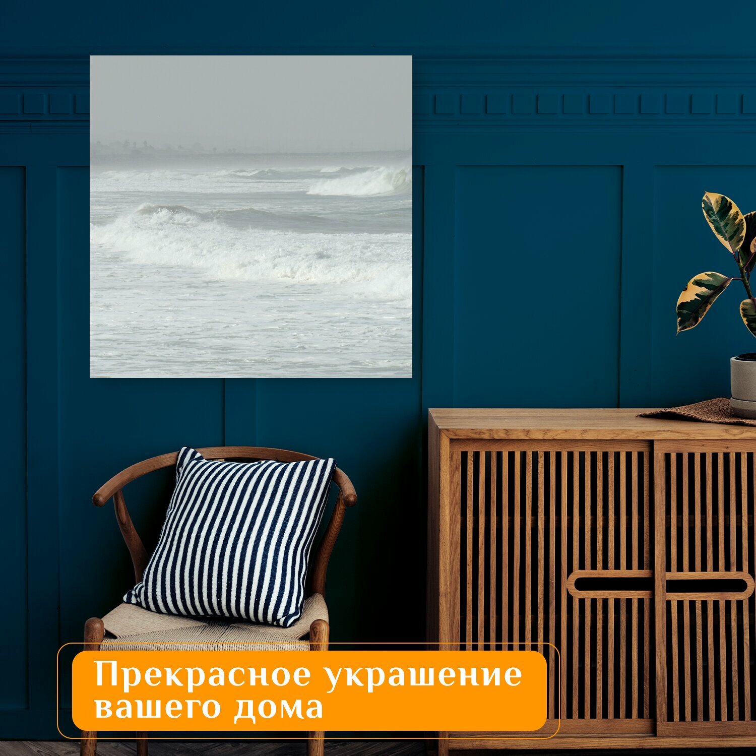 10 цен на Картина на холсте "Океан, волны, водоем" на подрамнике 75х75 см. для интерьера