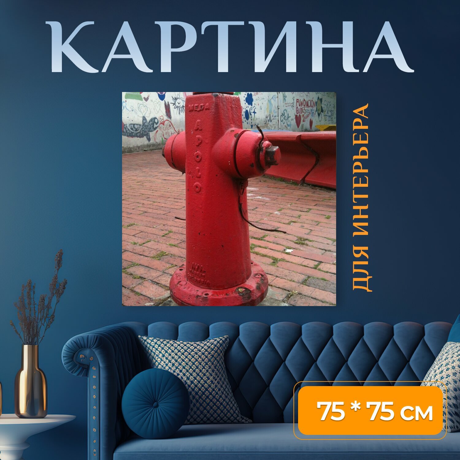 10 цен на Картина на холсте "Вода, пожарные, пожар" на подрамнике 75х75 см. для интерьера