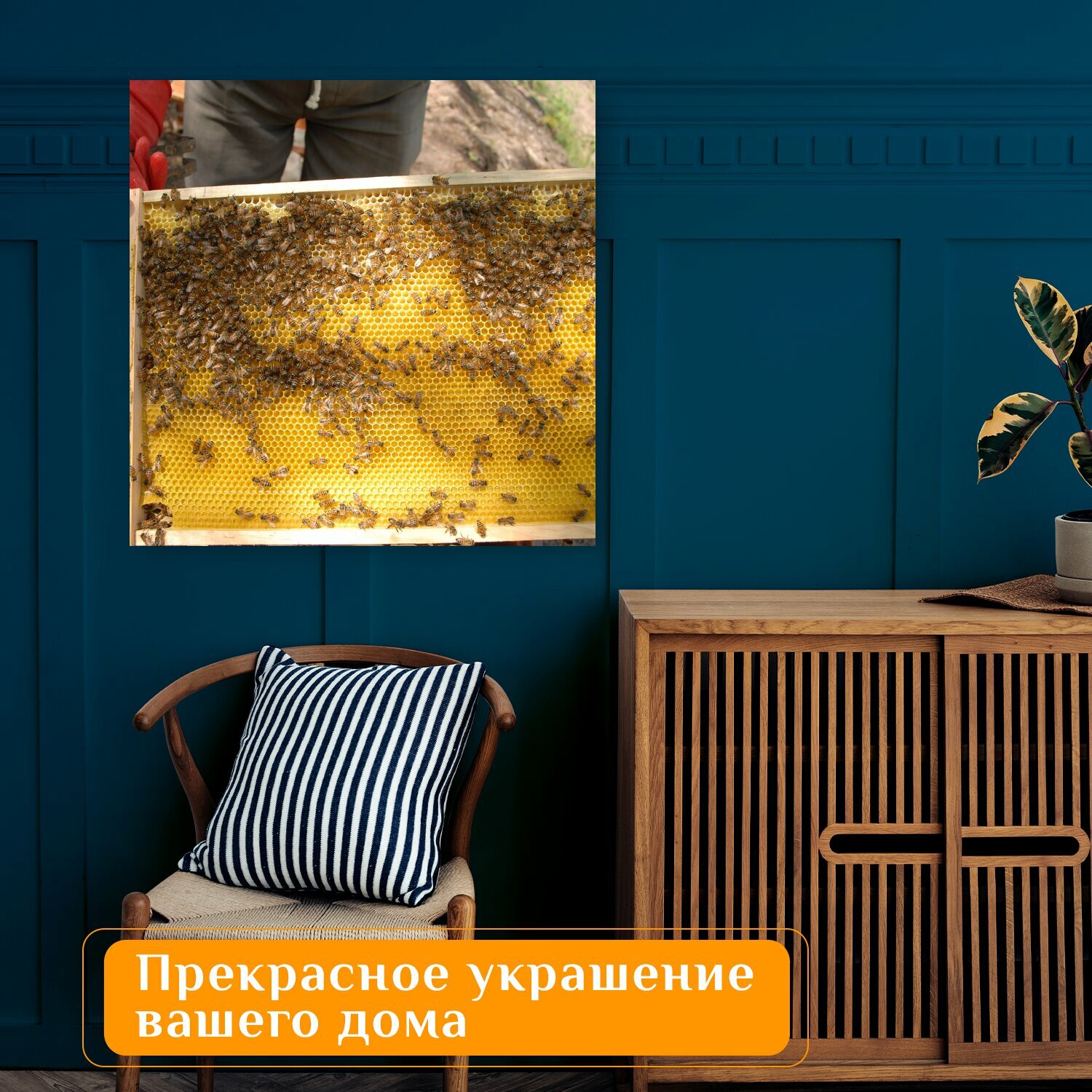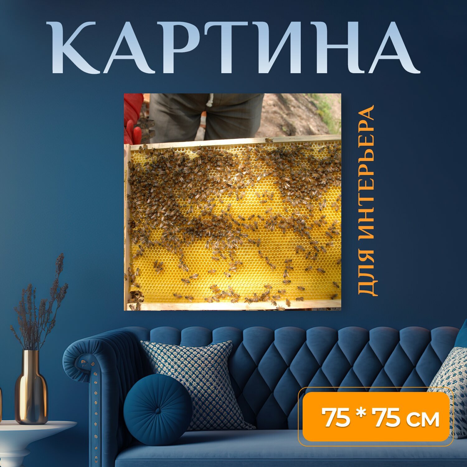 10 цен на Картина на холсте "Пчеловодство, улей, медовый" на подрамнике 75х75 см. для интерьера