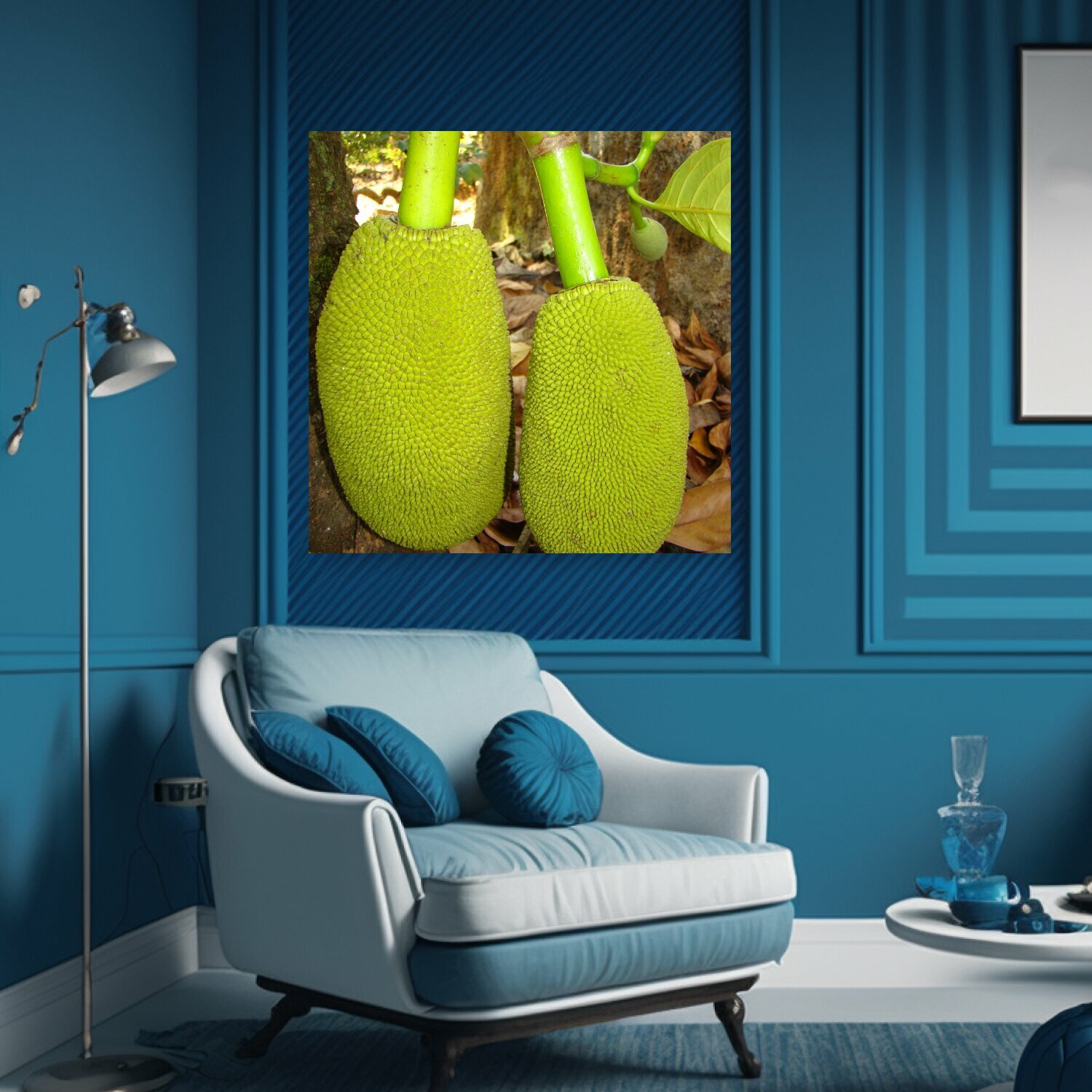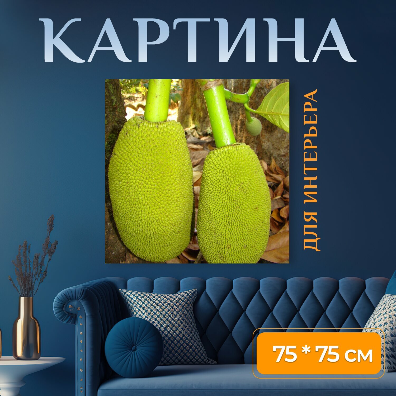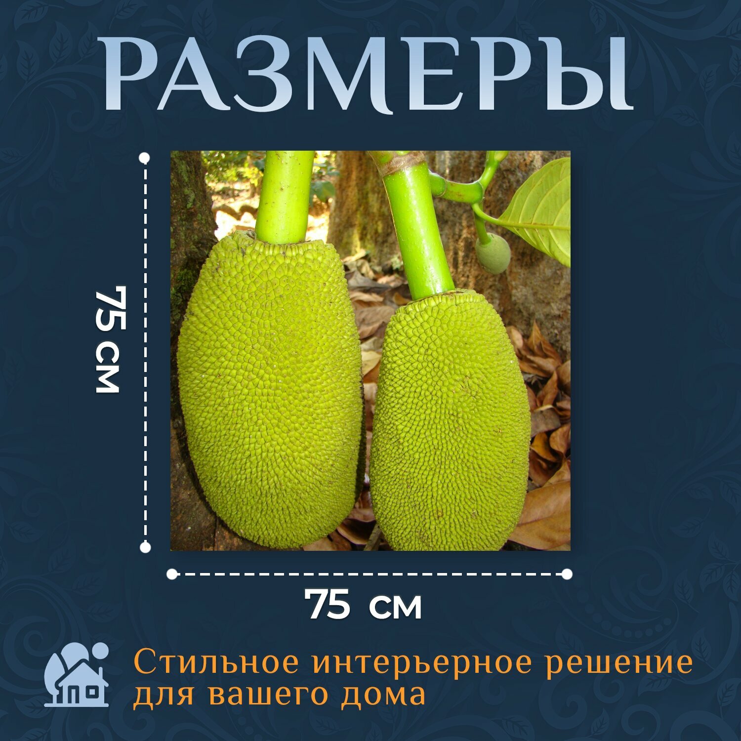 10 цен на Картина на холсте "Джекфрут, фрукты, зеленый" на подрамнике 75х75 см. для интерьера