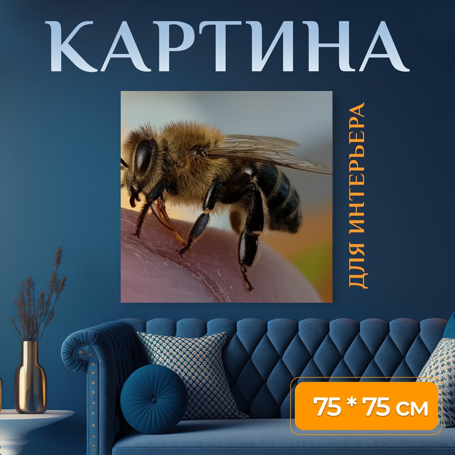 10 цен на Картина на холсте "Пчела, макрос, насекомое" на подрамнике 75х75 см. для интерьера