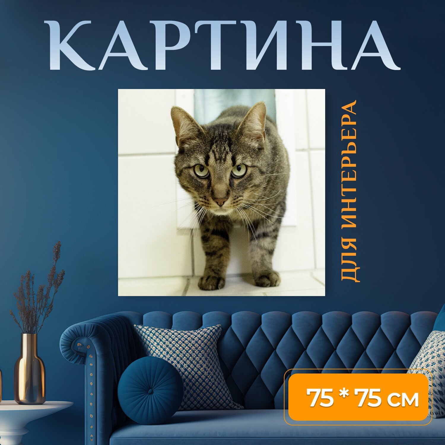 10 цен на Картина на холсте "Кот, животное, домашнее животное" на подрамнике 75х75 см. для интерьера