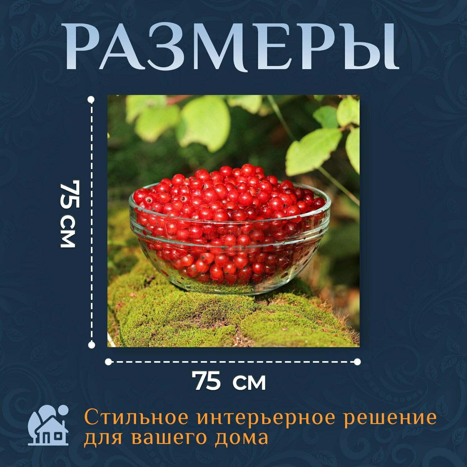 Картина на холсте "Смородина, мох, лес" на подрамнике 75х75 см. для интерьера информация: