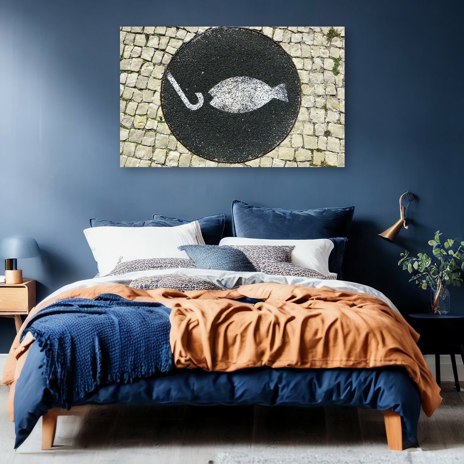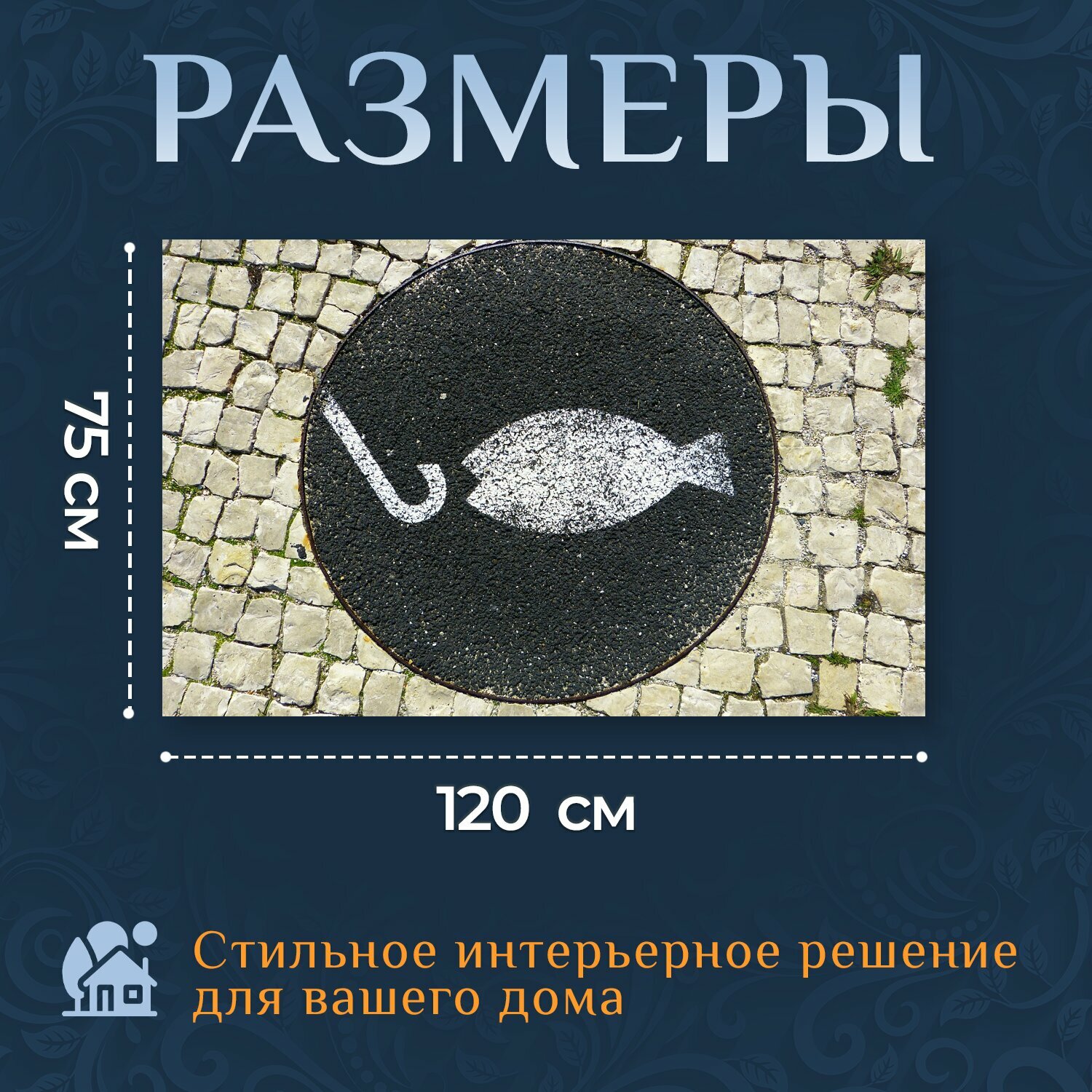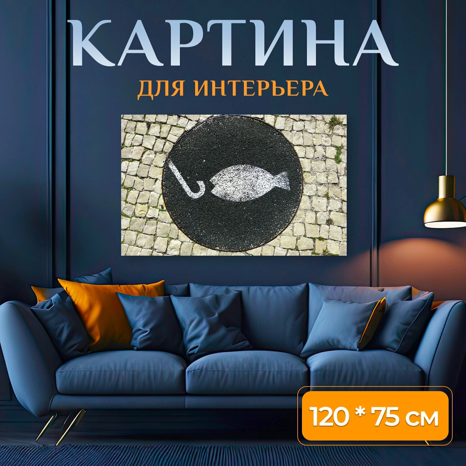 10 цен на Картина на холсте "Рыбы, рыболовный крючок, мозаика" на подрамнике 120х75 см. для интерьера
