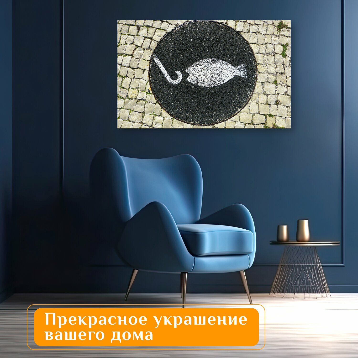 Отзывы на Картина на холсте "Рыбы, рыболовный крючок, мозаика" на подрамнике 120х75 см. для интерьера