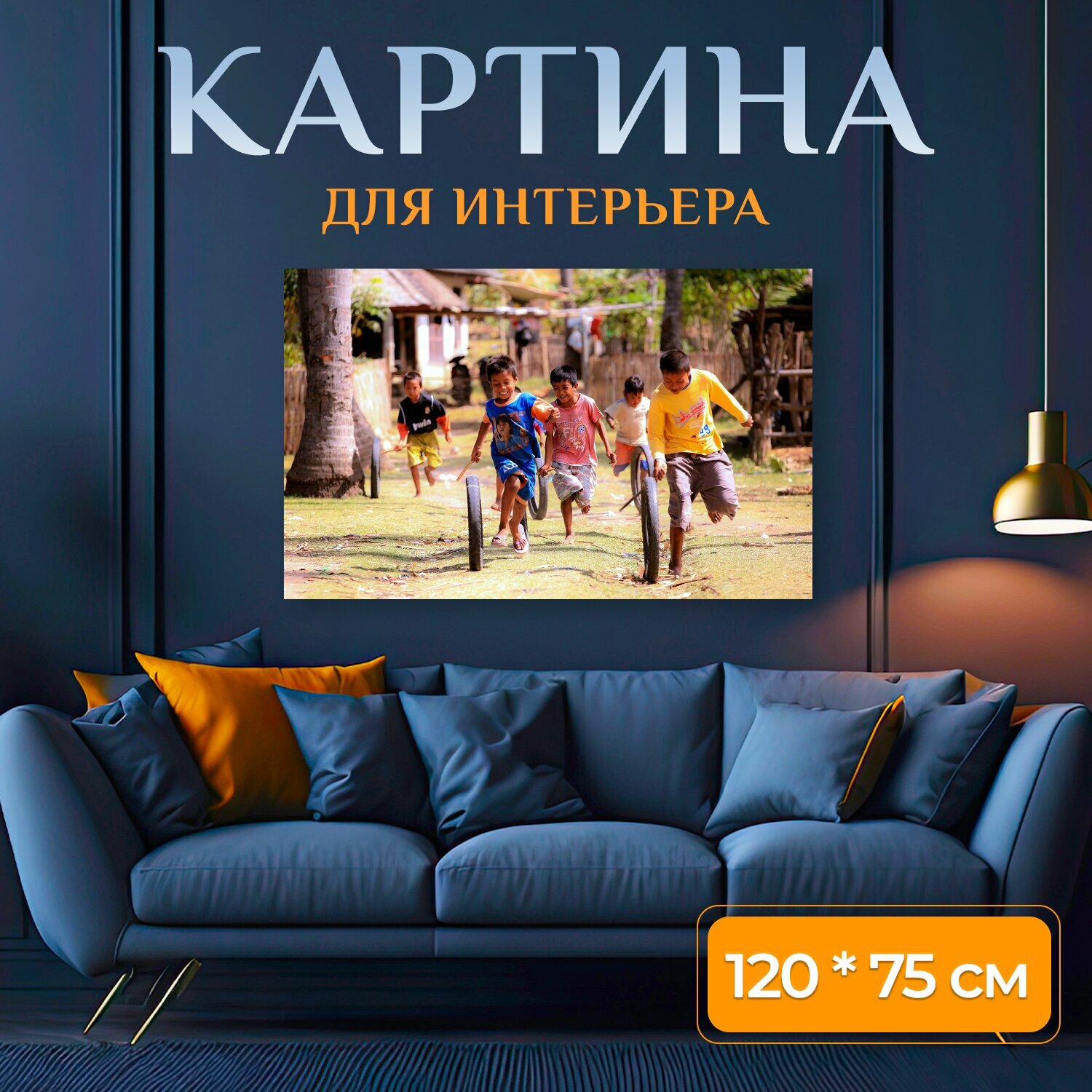 10 цен на Картина на холсте "Ребенок, играющий, детство" на подрамнике 120х75 см. для интерьера