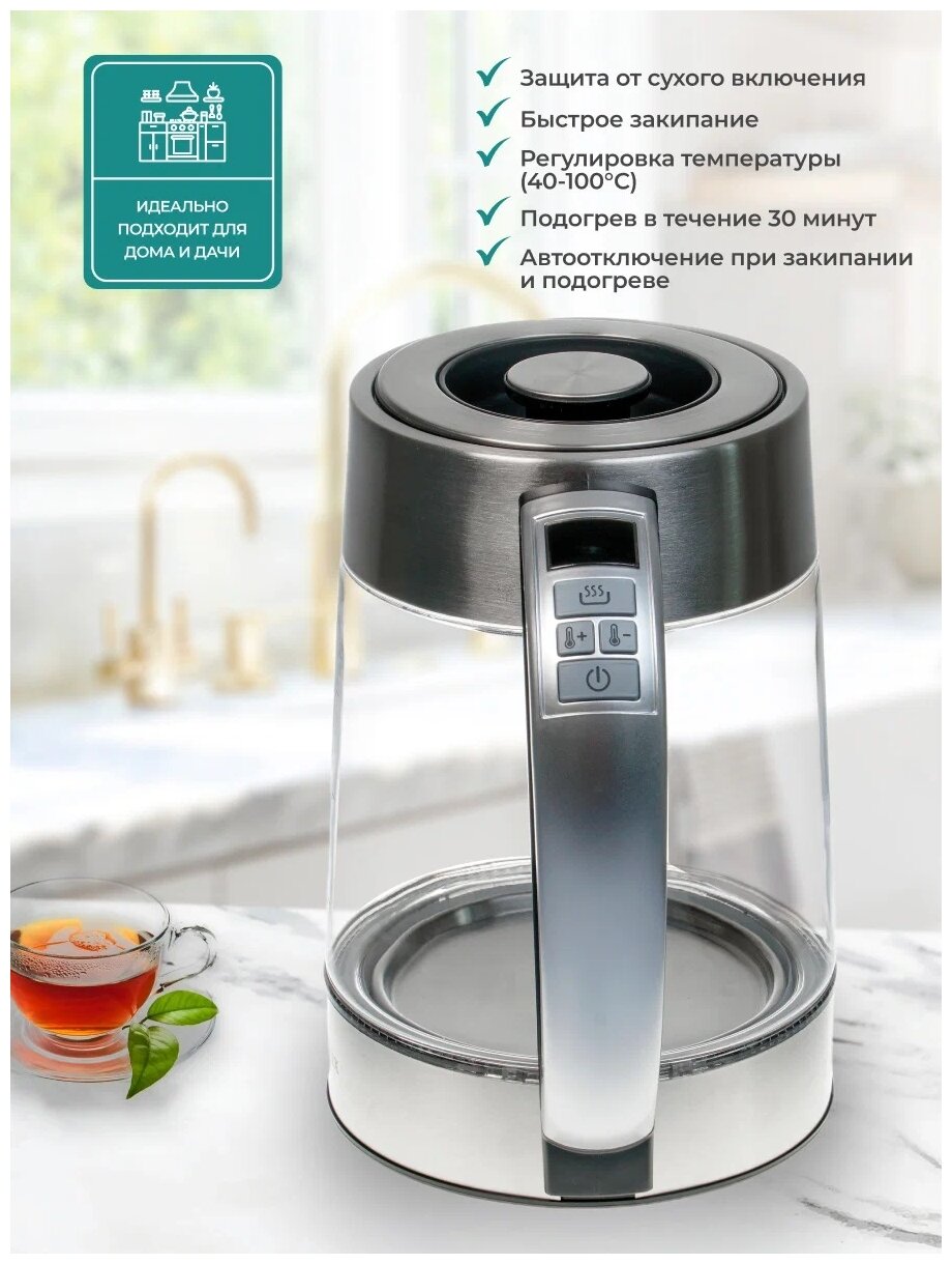 10 цен на Чайник электрический стеклянный с подсветкой и температурой