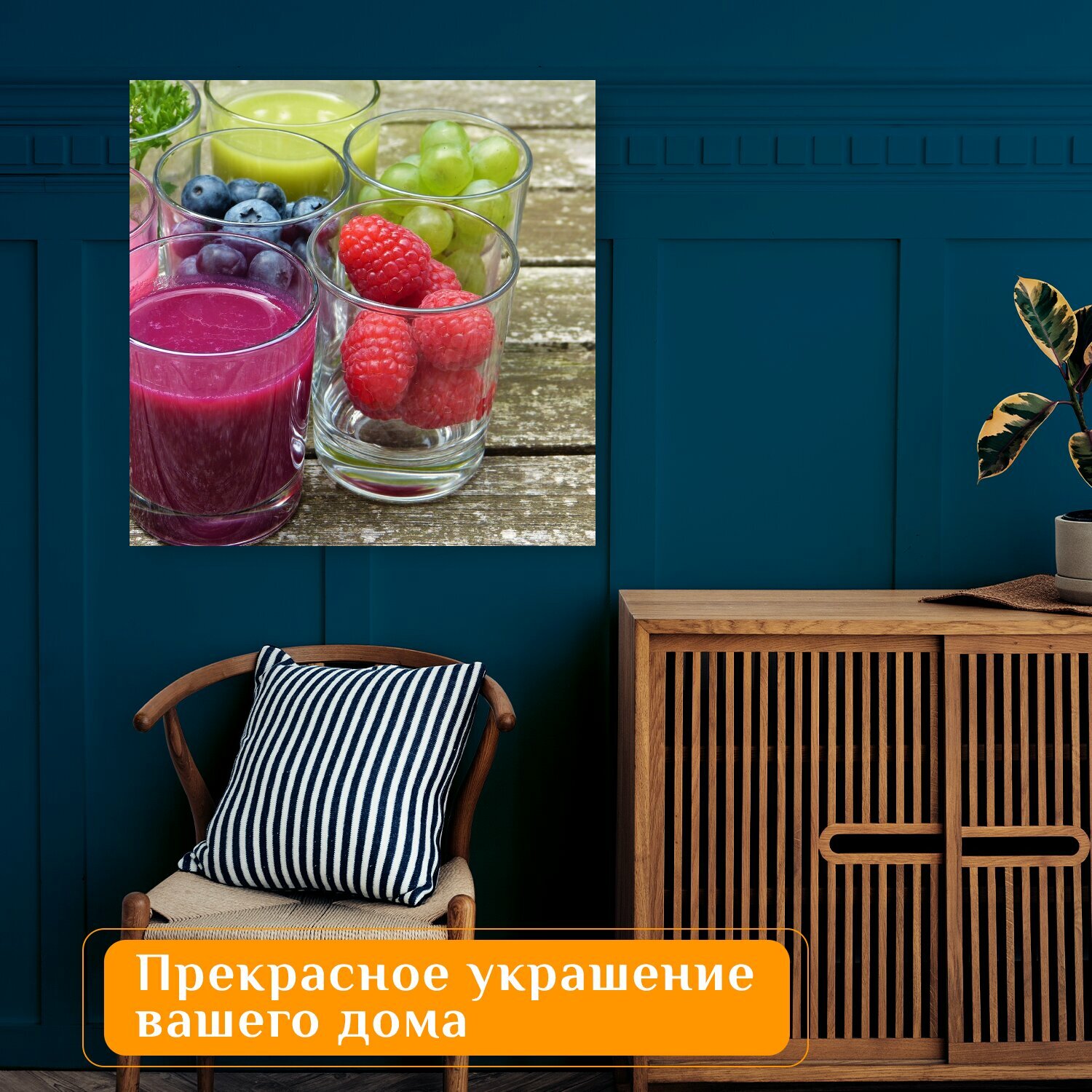 10 цен на Картина на холсте "Фрукты, сок, смузи" на подрамнике 75х75 см. для интерьера