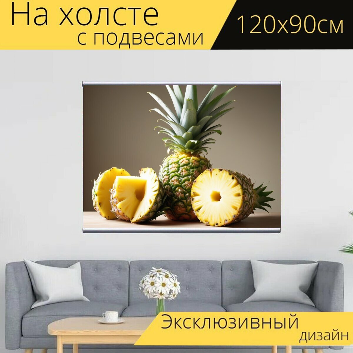 10 цен на Картина на холсте для любителей сладкого "Полезная еда, фрукты, ананас" с подвесами 120х90 см. для интерьера на стену