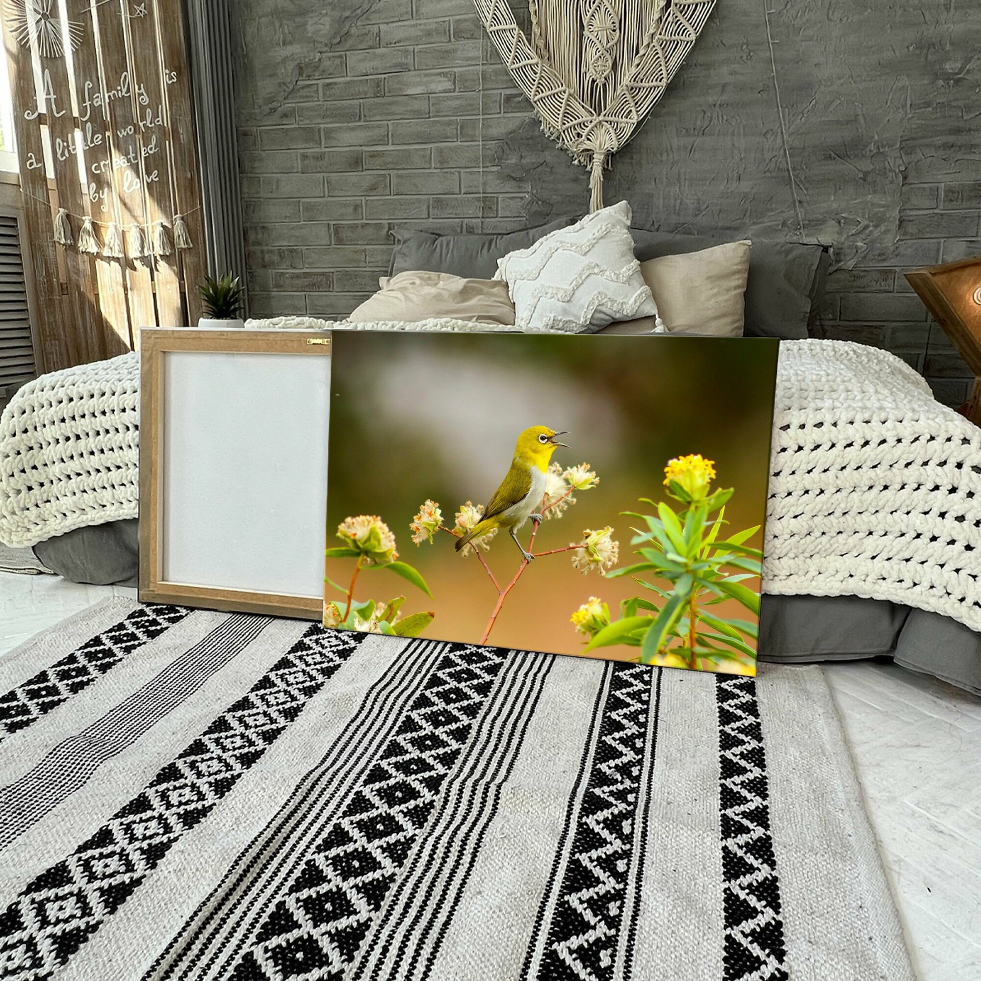 Картина на холсте (птичка белоглазка высокое качество цветы pleci betina) 40x60 см/для интерьера/в комнату/на стену/в подарок информация: