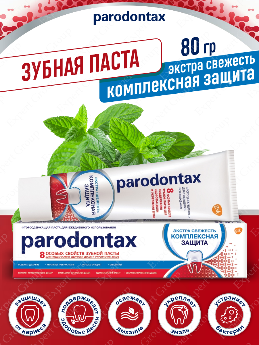 Зубная паста parodontax Комплексная Защита, от кровоточивости десен, зубного налета, для укрепления зубов и поддержания здоровья десен с фтором, 80 г