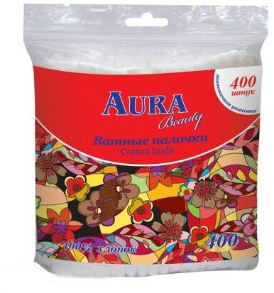 Палочки ватные AURA Beauty п/э пакет 400шт/уп 1 шт