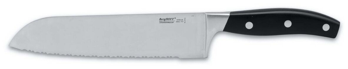Набор ножей Нож сантоку BergHOFF Essentials line 1307146, 14 ножей, ножницы, 3 разделочных доски и точилка с подставкой, черный / коричневый информация: