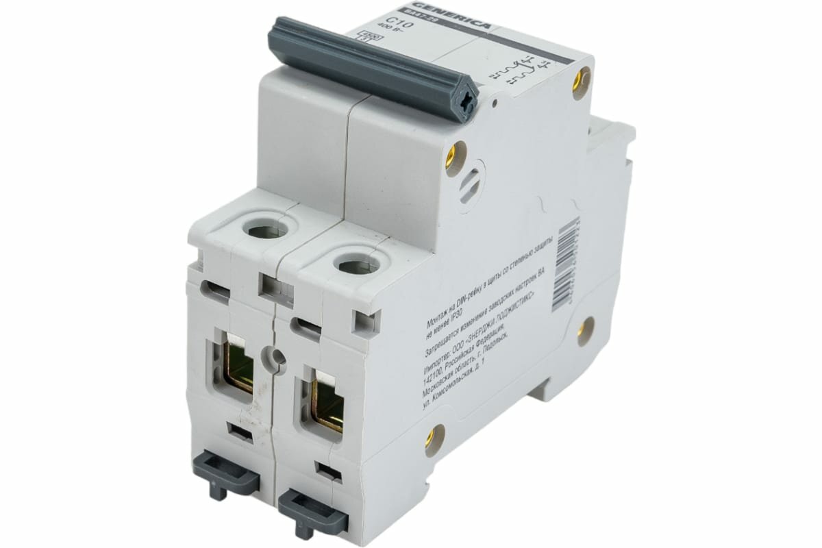 Выключатель автоматический IEK MVA25-2-010-C Generica 10A тип C 4.5kA 2П 400В 2мод серый упак.1шт информация: