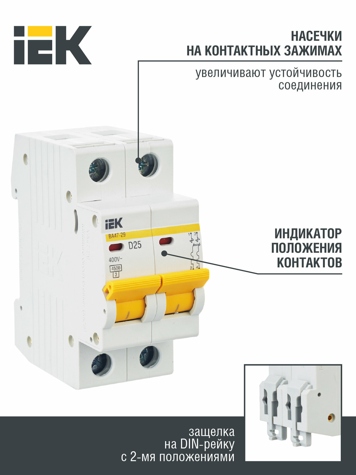 Отзывы на Выключатель автоматический модульный 2п D 25А 4.5кА ВА47-29 KARAT IEK MVA20-2-025-D