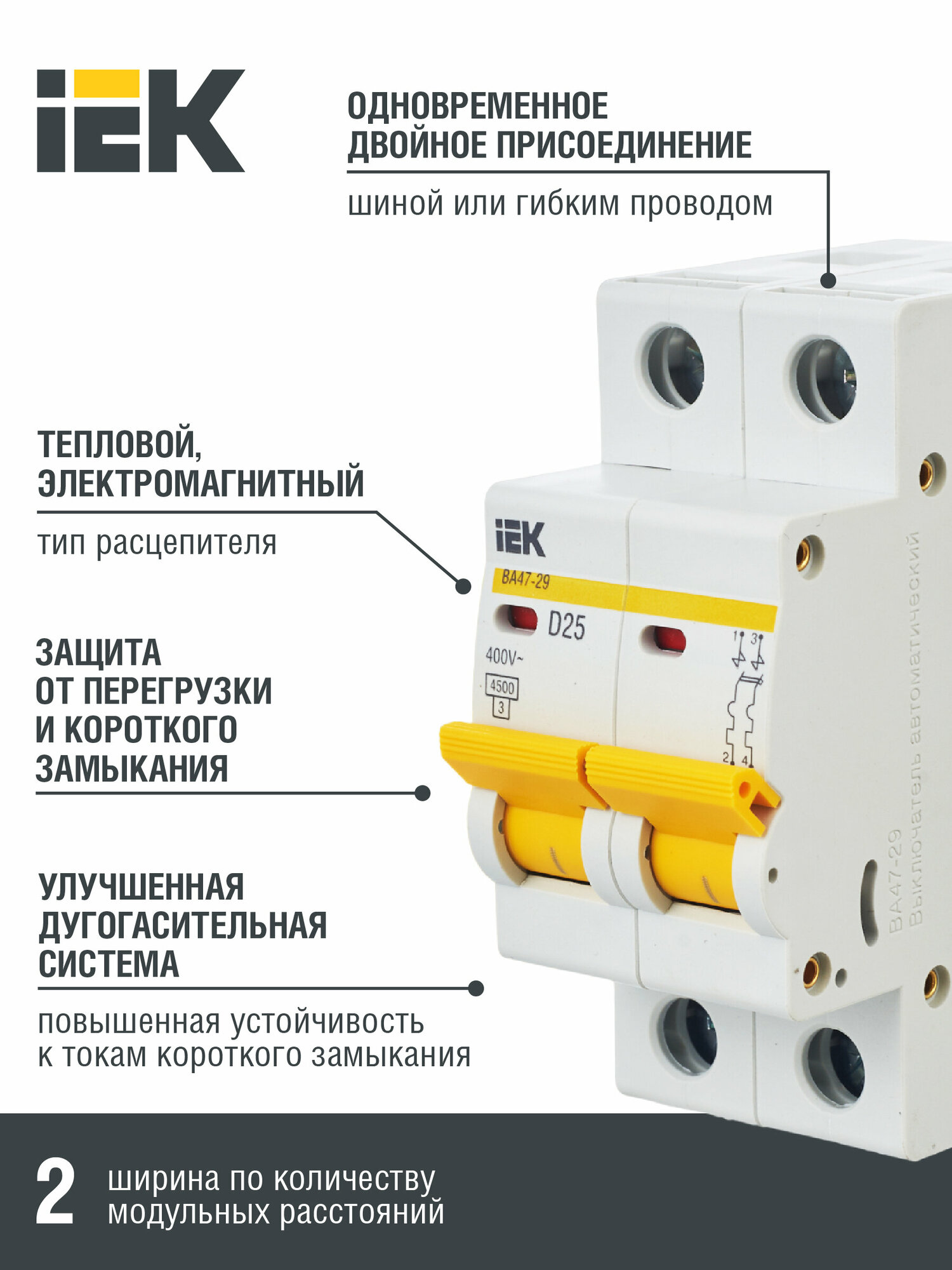 Автоматический выключатель IEK ВА47-29 2Р 25А 4,5кА х-ка D Mva20-2-025-d .