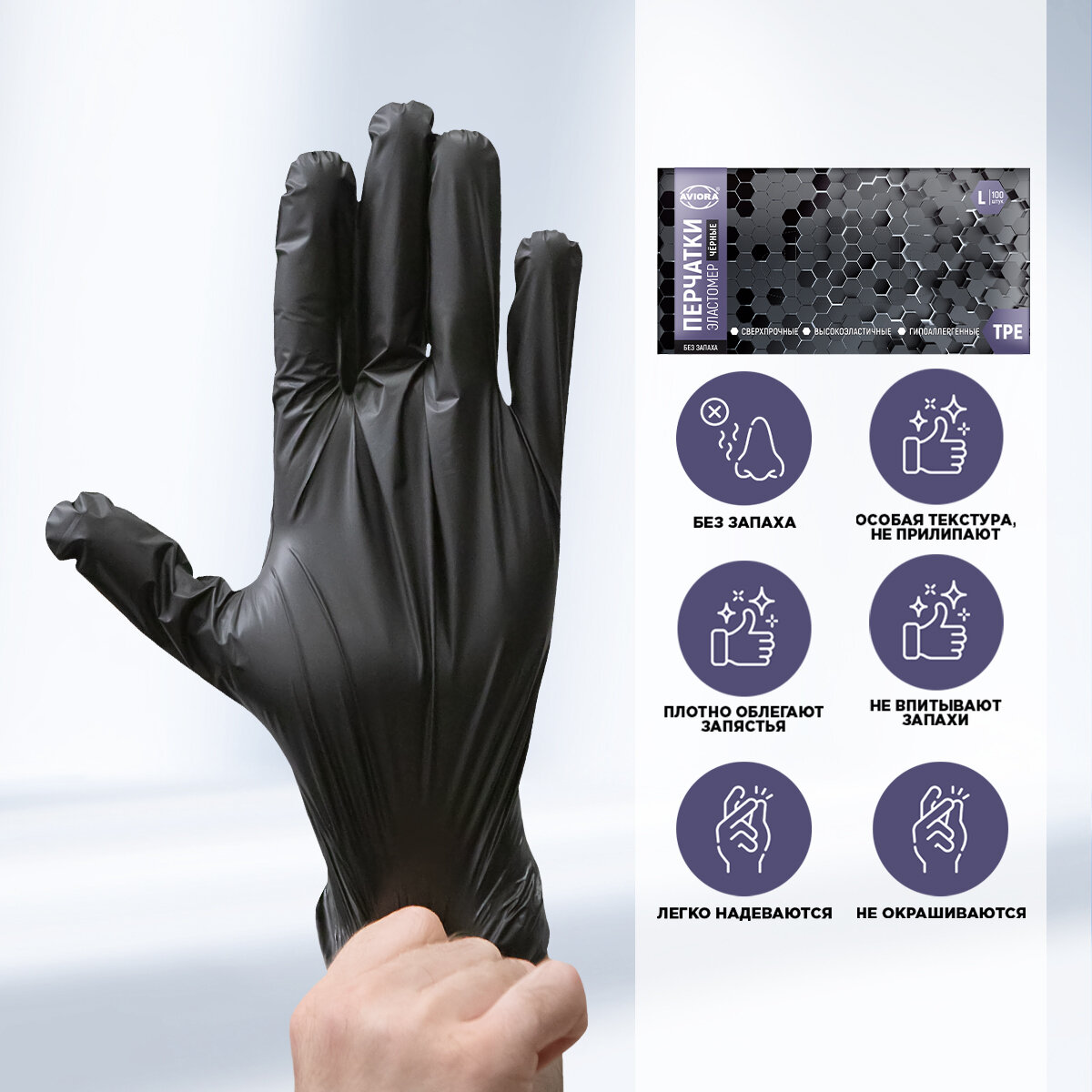 Отзывы на AVIORA Перчатки одноразовые эластомер / черные / размер L / 100 шт. в уп 402-884