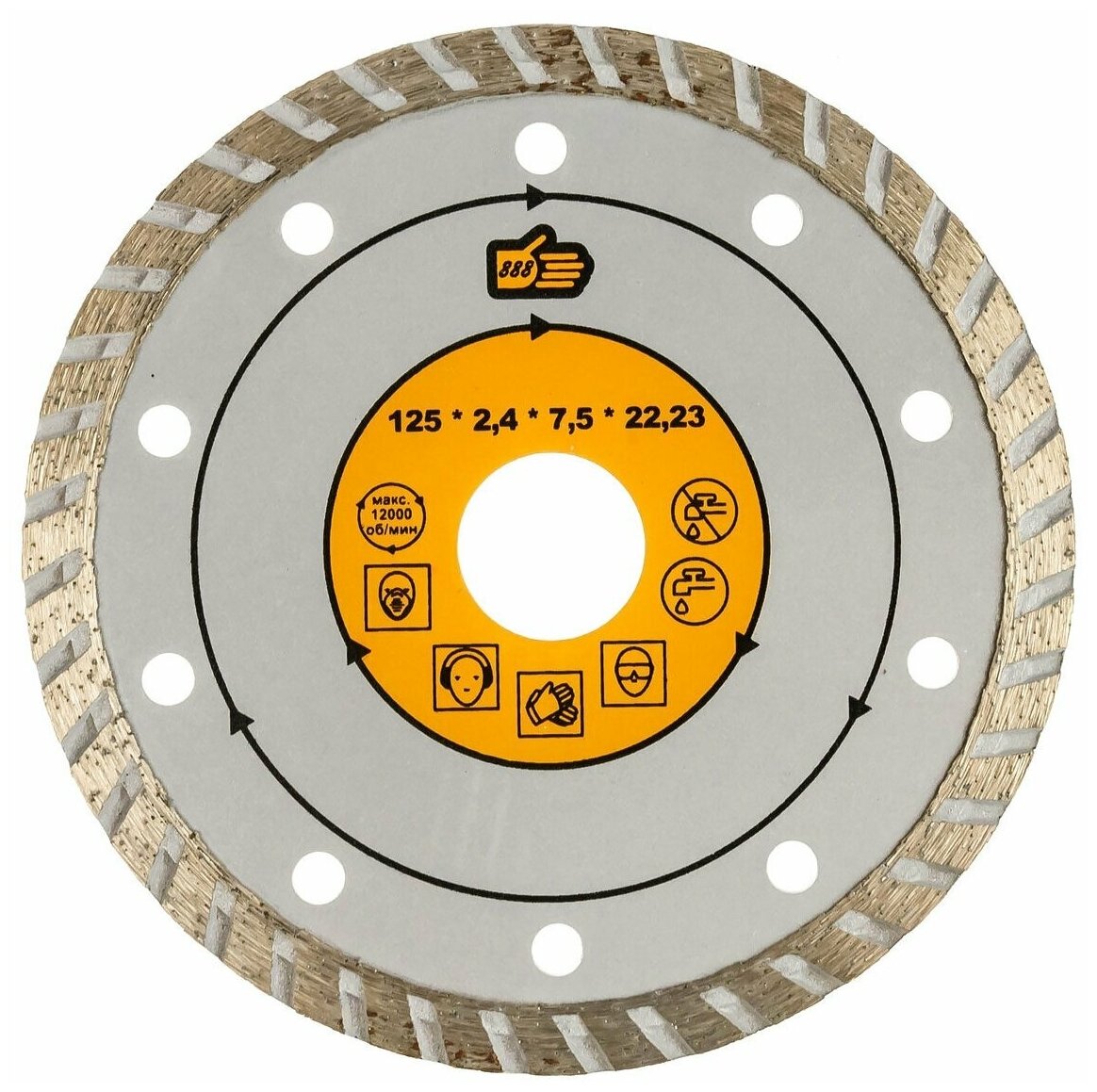 Круг отрезной алмаз турбо 125*2,4*22мм сух и влаж рез к/гранита, мрамора 6882020 промис (50/100) П информация: