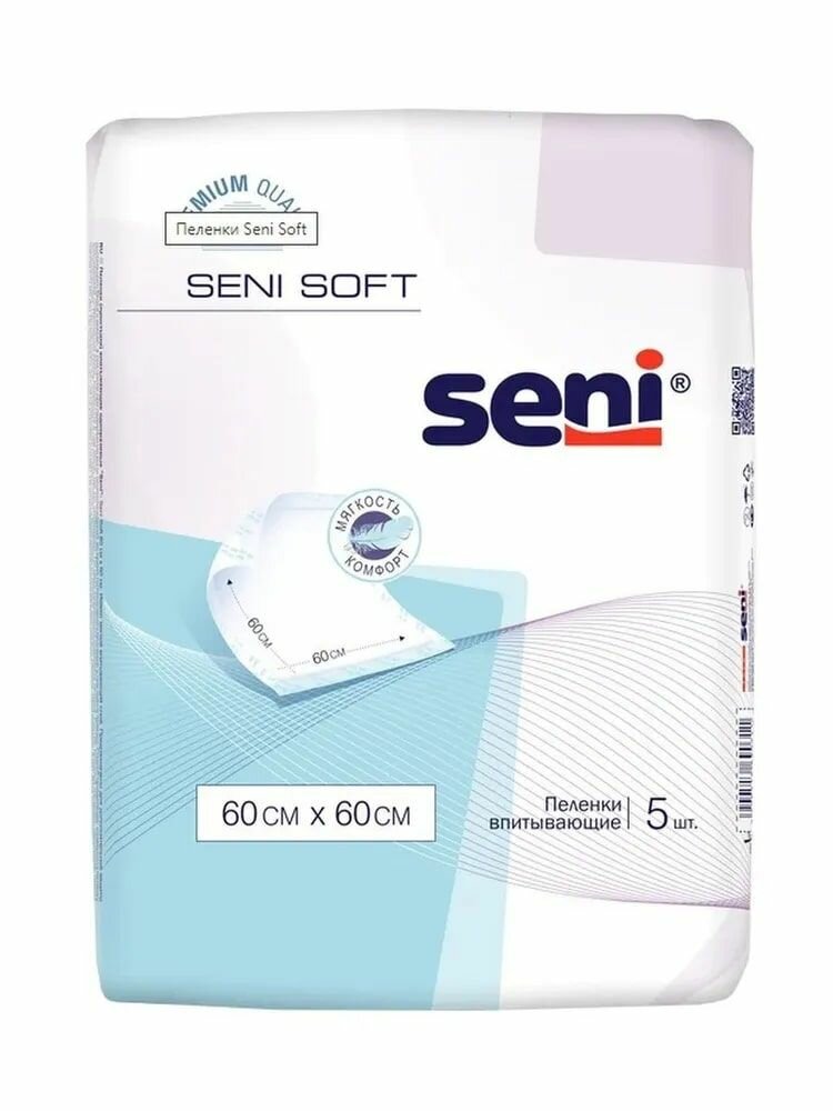Пеленки впитывающие одноразовые медицинские Seni Soft 60 x 60 cм (4 капли), 5 шт. информация: