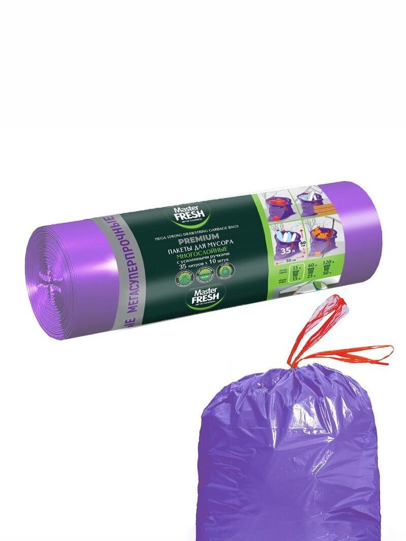 Мешки для мусора Master Fresh Premium с усиленными ручками, 60 мкм, 35 л, 10 шт, фиолетовые