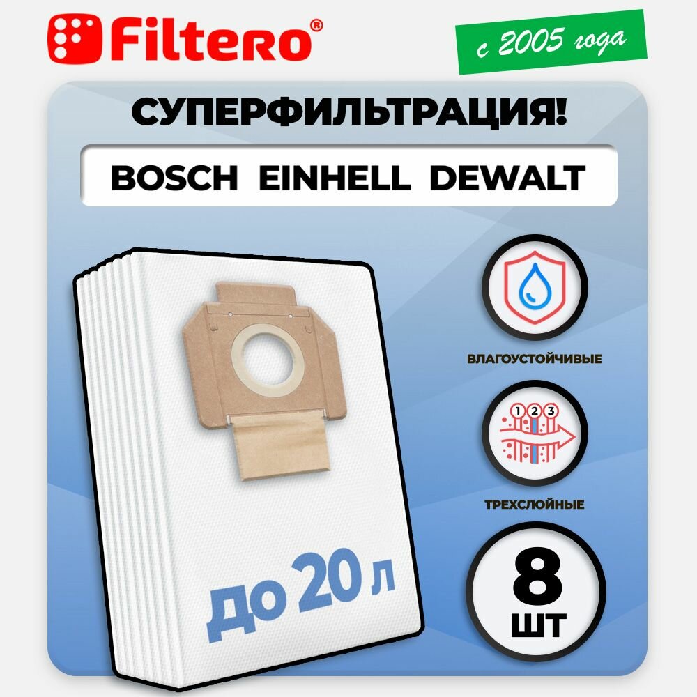 Мешки для пылесоса Bosch, Dewalt, Festool, Flex, Hilti, Nilfisk, Ryobi, Sparky, Stihl, Tmb, Корвет трехслойные синтетические Filtero BSH 15 Pro 20л 5шт 05623