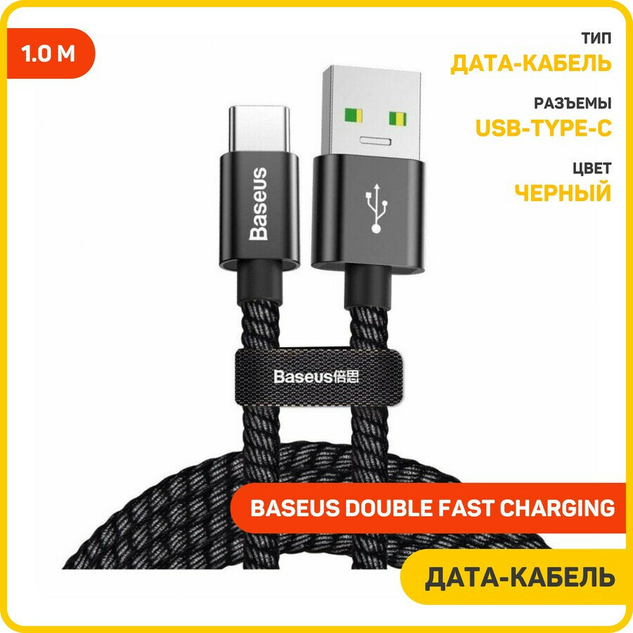 Дата-кабель Baseus Double Fast Charging USB-Type-C (плетеный шнур / 5 A) 1 м, черный информация: