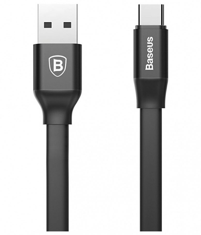 Дата-кабель Baseus Nimble USB-Type-C (плоский / 2 A), 0.23 м, черный с серебром