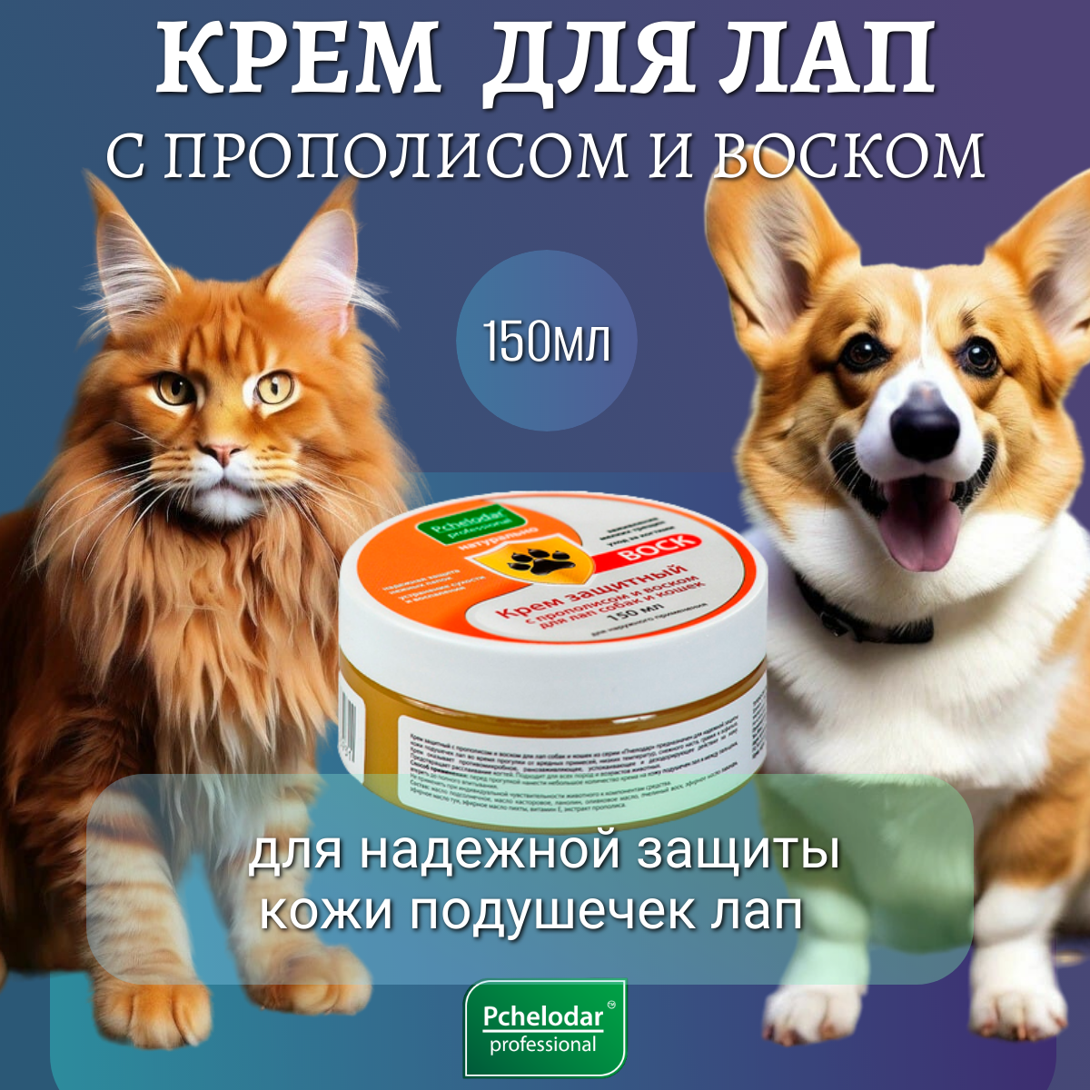 Крем защитный с прополисом и воском для лап собак и кошек 150гр
