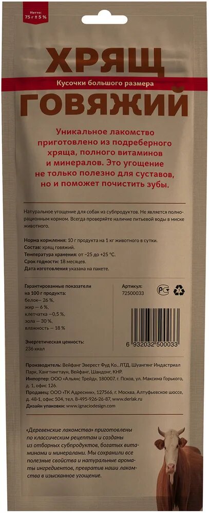 Деревенские лакомства 75 г классические рецепты хрящ говяжий большой размер информация: