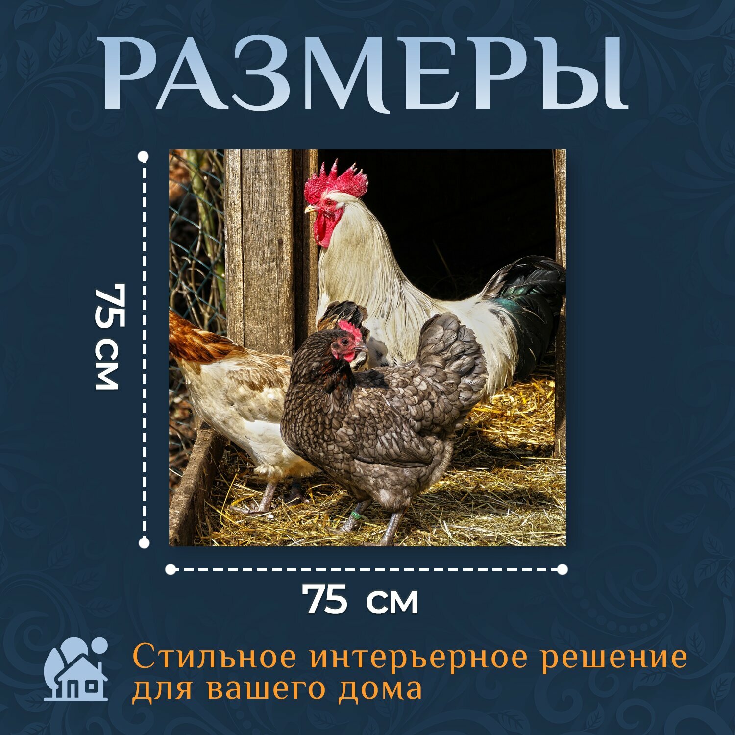 Картина на холсте "Курица, кран, домашняя птица" на подрамнике 75х75 см. для интерьера информация: