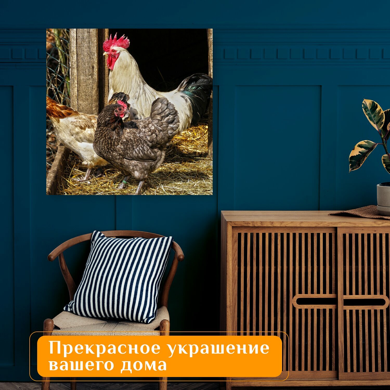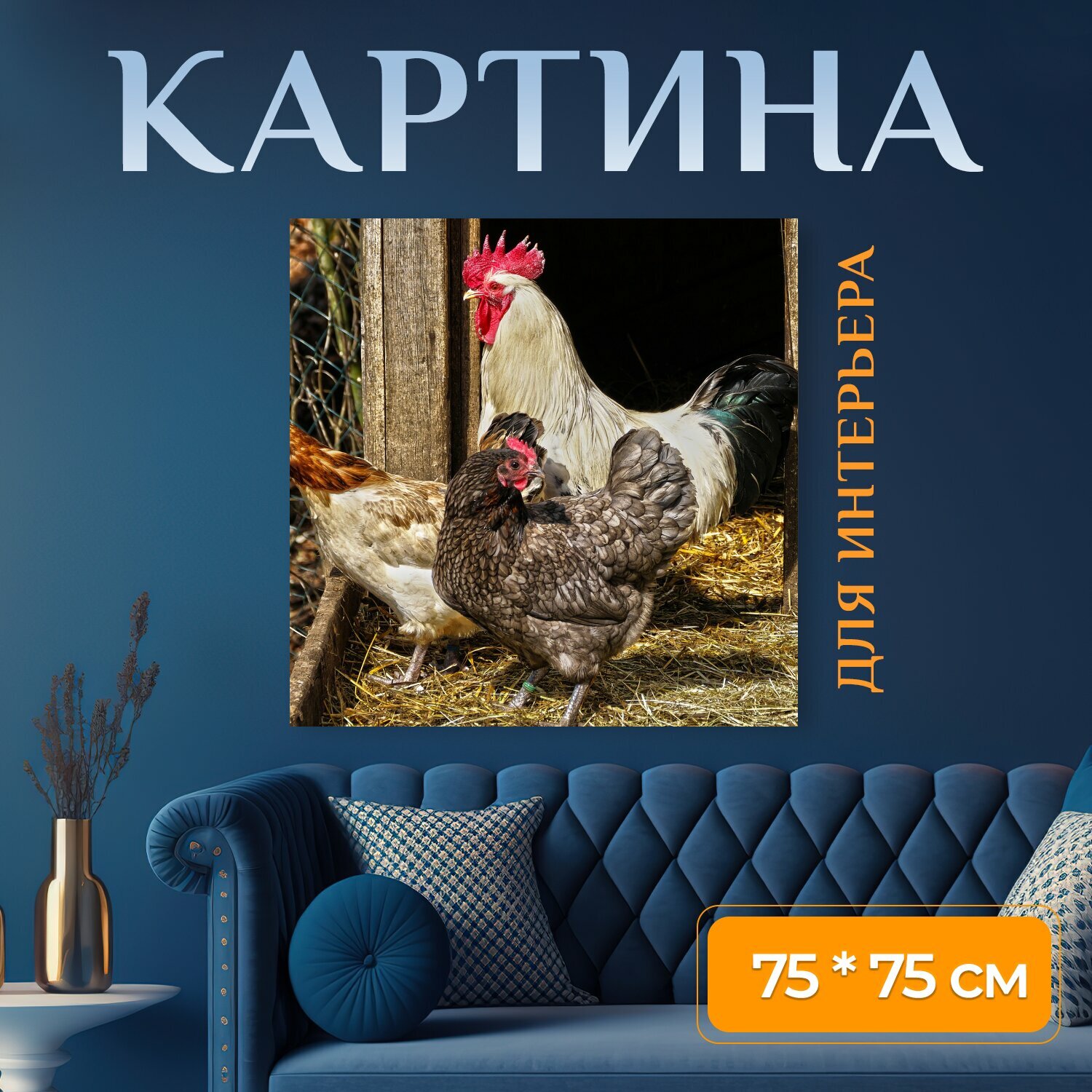 10 цен на Картина на холсте "Курица, кран, домашняя птица" на подрамнике 75х75 см. для интерьера