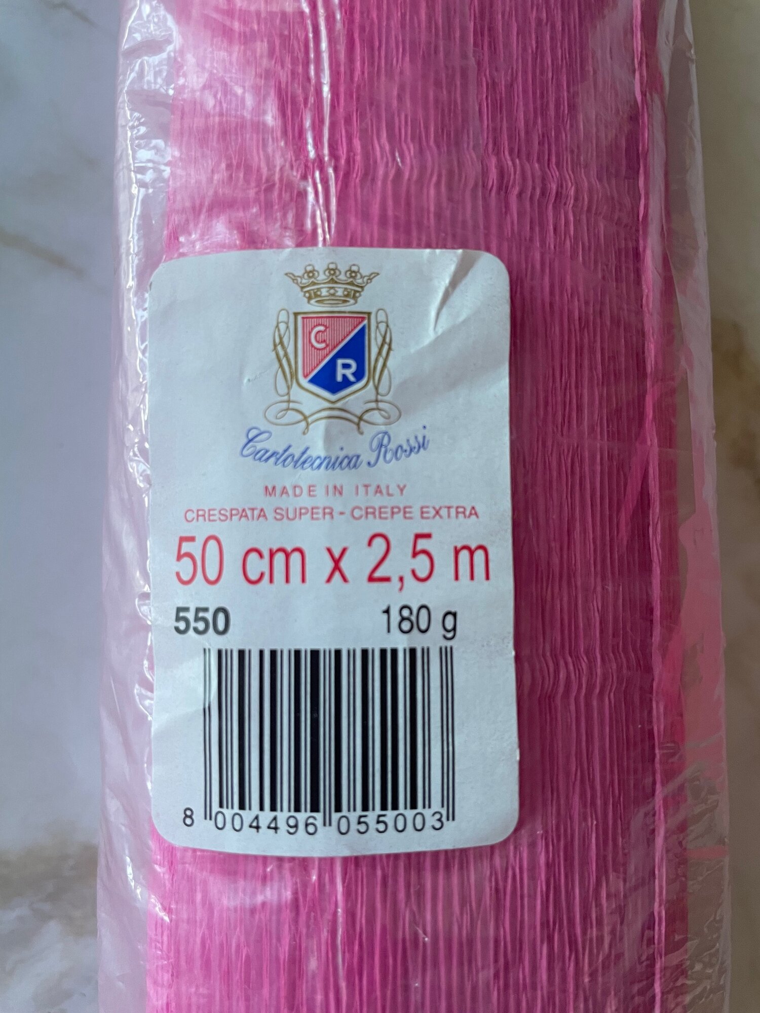 Цветная бумага крепированная в рулоне 180 г Cartotecnica Rossi, 50х250 см, 1 л.