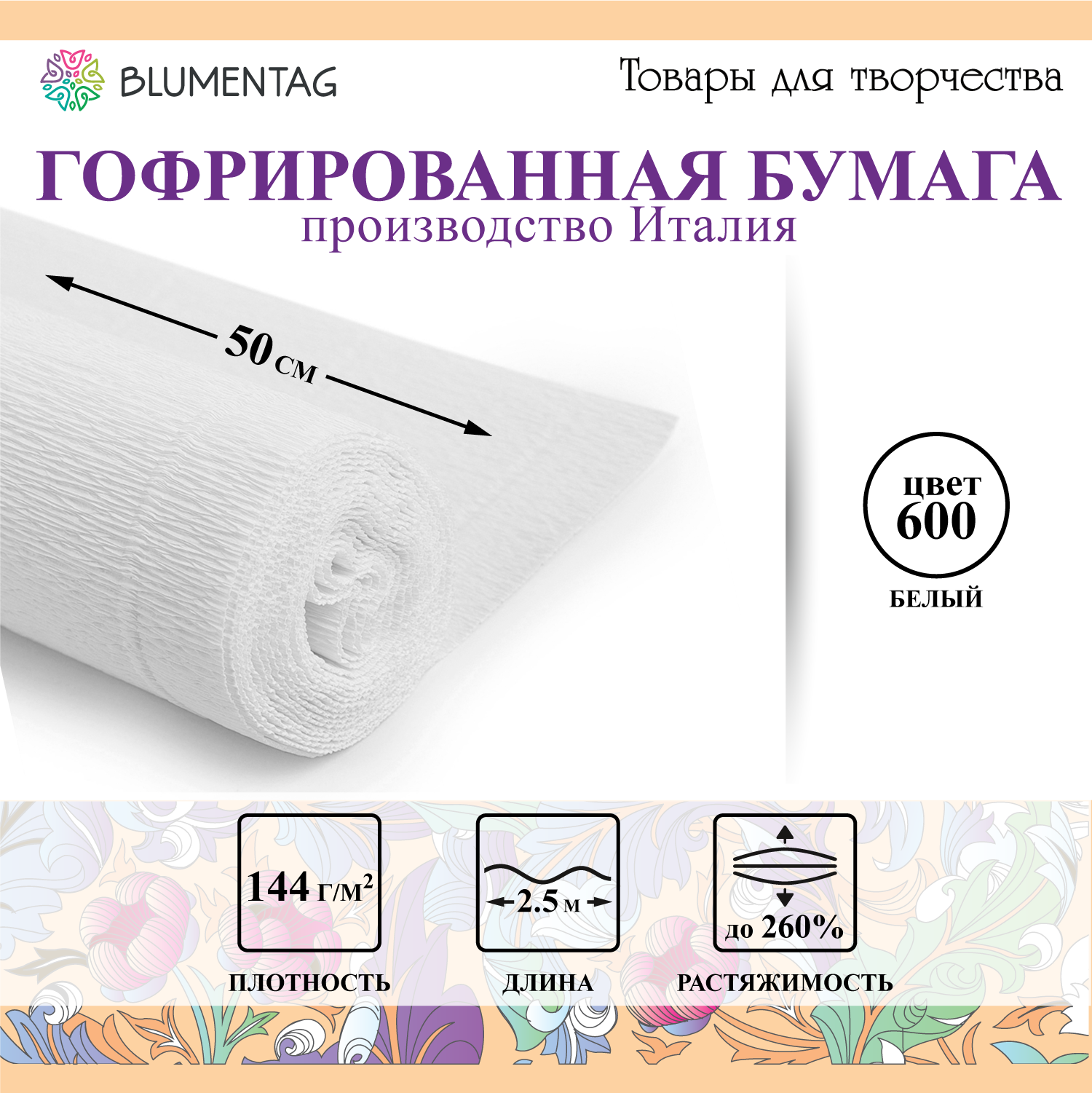 10 цен на Бумага гофрированная "Blumentag" GOF-180, 50 см х 2.5 м,180 г/м2 600 белый