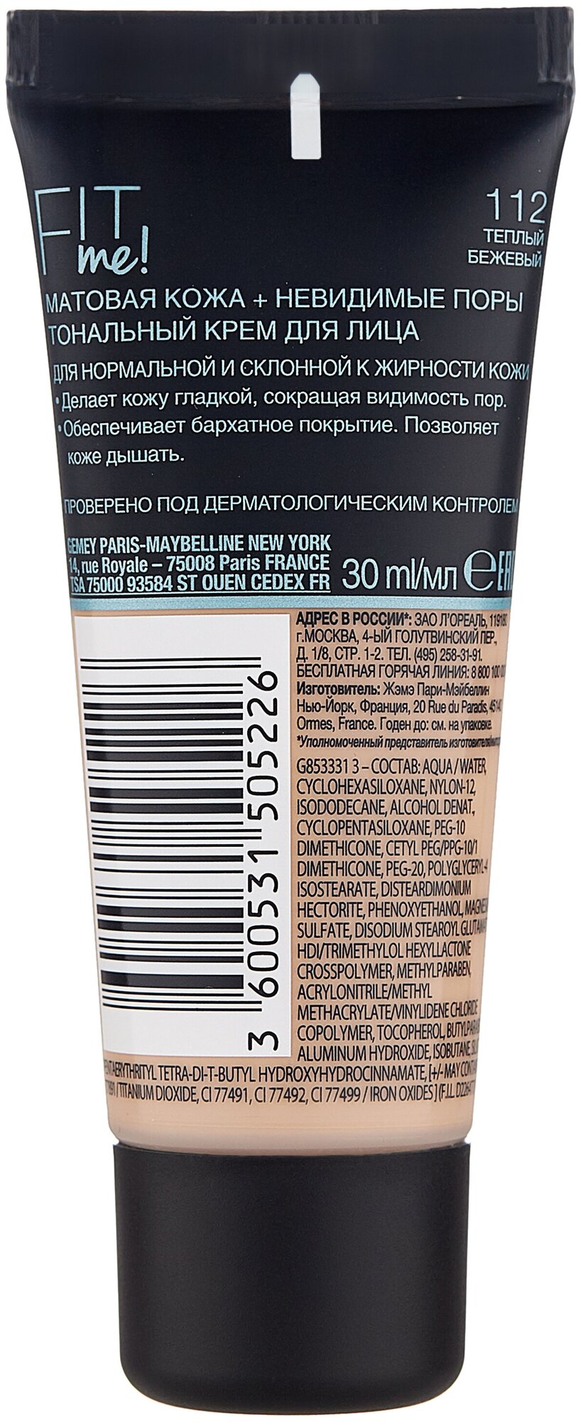 Maybelline New York Тональный крем Fit Me, 30 мл, оттенок: 112 Теплый бежевый