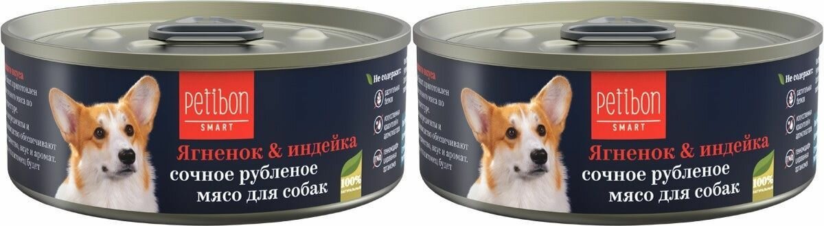 Petibon Корм консервированный для собак Smart Рубленое мясо Ягненок и индейка, 100 г, 2 шт. информация: