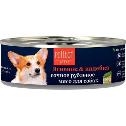 Корм консервированный для собак Petibon Smart для собак "Рубленое мясо с ягненком и индейкой", 100 г х 24 шт.