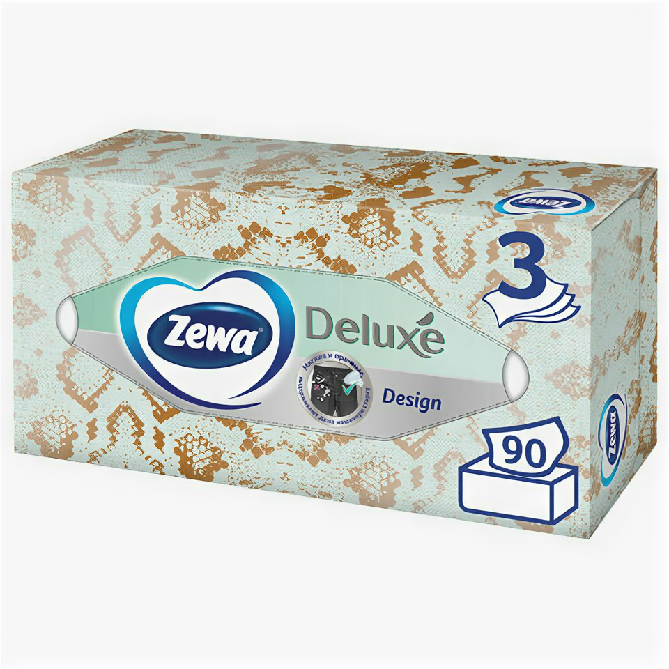 Салфетки косметические 90 штук в картонном боксе, 3-слойные, ZEWA Deluxe Design, 28420 (цена за 1 ед.товара)